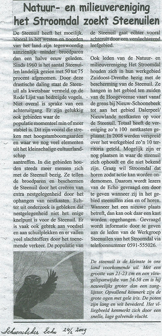 sponsoring van de natuur-en milieuvereniging "het Stroomdal" te Schoonebeek